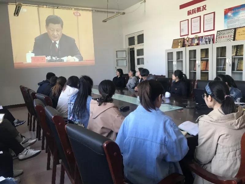 2019年4月30日10时30分,纪念五四运动100周年大会于北京人民大会堂举行。ok138cn太阳集团529团学办公室主任晁卫宁及学生党员、团员代表们于红楼党员活动室集中观看了本次大会直播并进行集中交流讨论,大家对五四精神有了更深刻的认识。