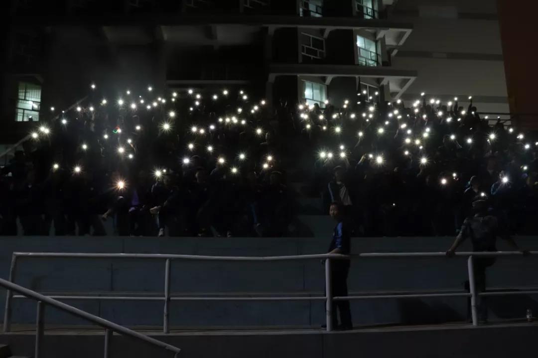 晚训期间,带队教官组织班级团队开展拉歌比赛。同学们积极参与,操场上传来一阵阵团结的口号声、嘹亮的军歌声、青春的欢笑声。