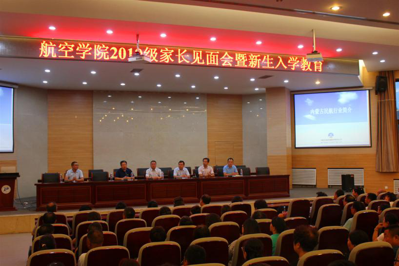 我院于2019年9月7日19:00在第三教学楼报告厅召开2019级新生及新生家长见面会暨新生入学教育第一讲。学院党总支书记郭凌峰、院长赵卫国、副书记副院长吴斌、副院长韩建峰、飞行员招生专员蔡进及学院辅导员参加会议,并特邀行业专家、我校2001级校友—内蒙古民航机场集团呼和浩特机务部经理邹超参会。2019级全体新生及家长参加会议。