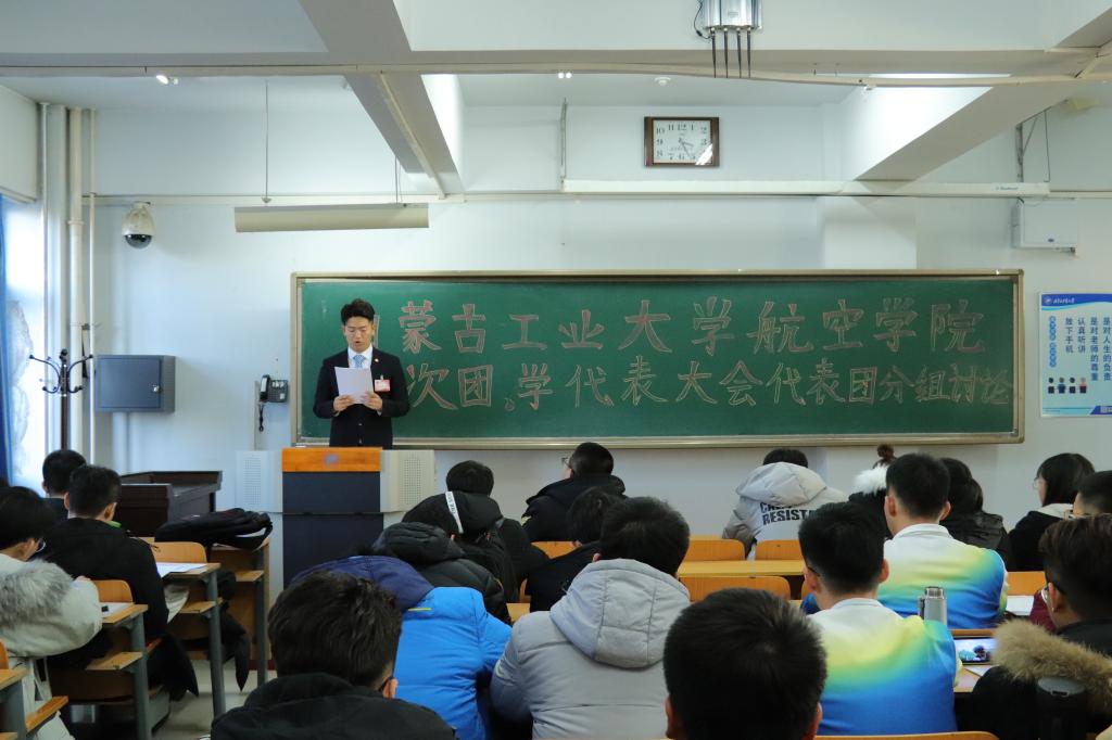连溪同志向大会作《高举团旗跟党走 共谱内蒙古航空工程高等教育事业全新篇章》团总支工作报告,汇报一年来我院共青团工作取得的成绩、存在的不足及对未来工作发展的规划。大会工作人员代ok138cn太阳集团529学生会组织筹备工作组宣读《强化自我管理勇担时代使命 传承服务理念 谱写航空华章》的学生会组织筹备工作组工作报告,总结近一年来学生会组织筹备工作组工作情况并对今后的学生会发展进行展望。