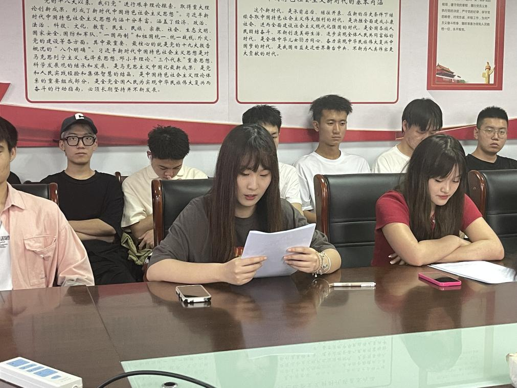 段池蓬、张曦文、王宏丽、杨子潇、胡杰、王瑞钰、李红志、贾一帆等八名学生代表分别从班团,发展对象,积极分子,优秀志愿者志愿者,学生社团干部,团员和非团员角度进行交流发言,阐述不同阶段、不同角色的大学生的个人理想、所承担的责任与个人担当,只有每个人都肩负起自己所在的角色和职责,才能在这个社会中创造出更高的价值。大家纷纷表示,只有在担当起自己的责任和使命的同时,才能够更好地为社会、为人民做出贡献,最终实现中华民族伟大复兴的中国梦。