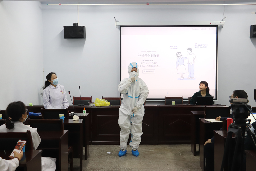 会议邀请校医院院长沈立峰作疫情防控专题知识讲座。沈立峰从个人日常防控措施和学校师生返校防控措施两个方面,讲解了目前适用于广大师生的疫情防控知识。校医院工作人员现场演示了防护服等防护用品的穿脱全流程,详细讲解了动作要领和注意事项。