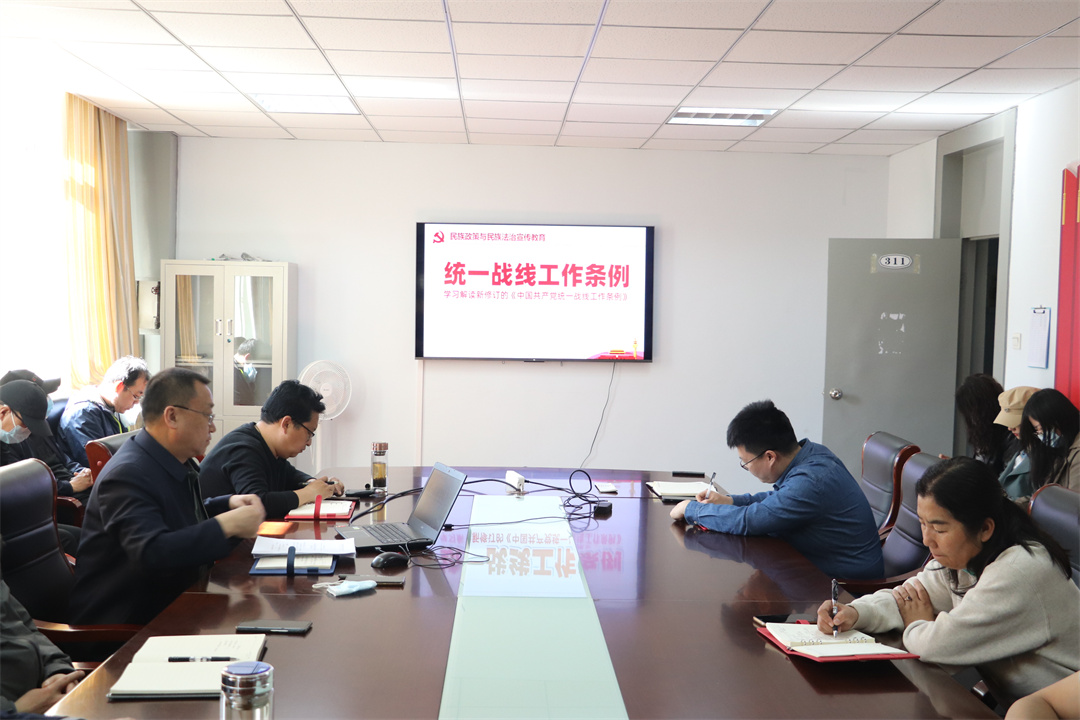 5月12日,ok138cn太阳集团529组织《中国共产党统一战线工作条例》、《内蒙古自治区促进民族团结进步条例》和《中华人民共和国民族区域自治法》专题学习,全体教师参加,ok138cn太阳集团529党委书记郭凌峰主持学习。