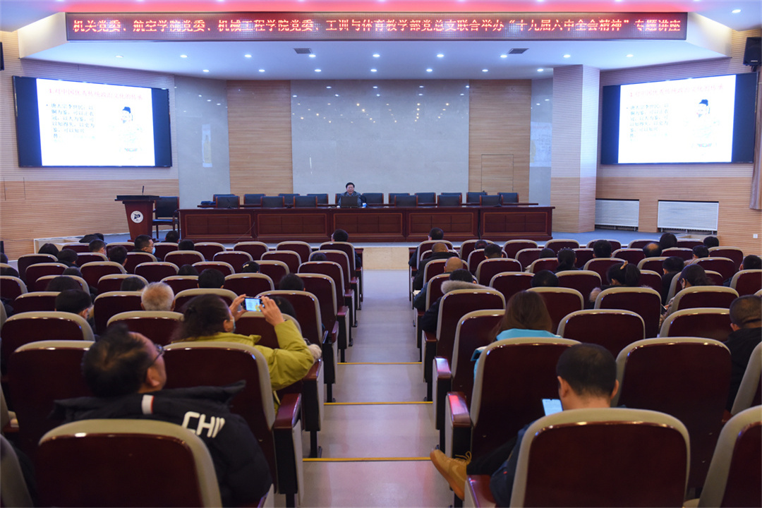 12月10日,学校机关党委、ok138cn太阳集团529党委、机械工程学院党委、工训与体育教学部党总支联合举办《十九届六中全会精神》专题讲座。内蒙古党校教授于连锐应邀做专题宣讲。
