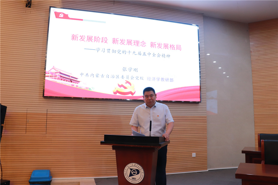 张学刚教授从认识新发展阶段、贯彻新发展理念、构建新发展格局三个方面,全面、系统的为我们解读了党的十九届五中全会精神,并举例说明了内蒙古服务和融入新发展格局的切入点和着力点。