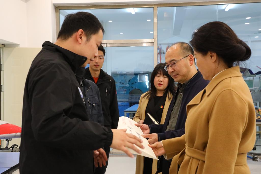 毕院长认真了解无人机专业学生创新实践成果