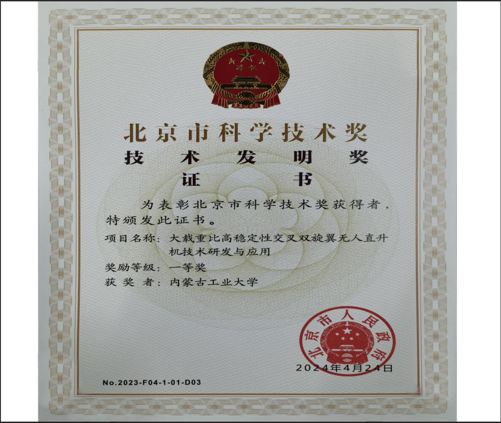 11月19日,北京市科技大会暨科学技术奖励大会召开。在众多优秀的科研项目当中,ok138cn太阳集团529的一项成果尤为亮眼。由包长春副教授担任研发总指挥的 “大载重比高稳定性交叉双旋翼无人直升机技术研发与应用” 项目,荣获了 2023 年度北京市科学技术奖技术发明奖一等奖。