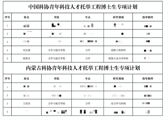 近日,2025年度中国科协青年科技人才托举工程博士生专项计划及内蒙古自治区科协青年科技人才托举工程博士生专项计划入选结果相继公布。我院共有2名博士生入选中国科协项目,1名博士生入选内蒙古自治区科协项目,这标志着我院在拔尖创新人才培养和青年科技后备力量建设方面取得了又一重要突破。