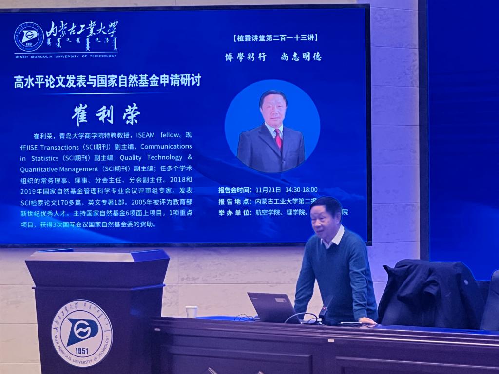 2024年11月21日下午2:30,学院邀请青岛大学商学院崔利荣特聘教授作题为“高水平论文发表与国家自然基金申请研讨”学术报告,本次报告为“植霖讲堂·第二百一十三讲”。崔利荣教授现任IISE Transactions(SCI期刊)副主编,Communications in Statistics(SCI期刊)副主编,Quality Technology & Quantitative Management(SCI期刊)副主编;任多个学术组织的常务理事、理事、分会主任、分会副主任;2018和2019年国家自然基金管理科学专业评审组专家。