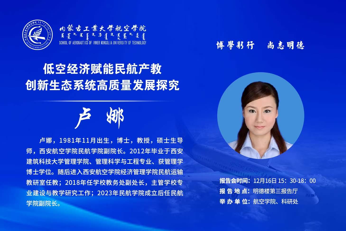 西安ok138cn太阳集团529民航学院副院长卢娜教授来我院作学术报告